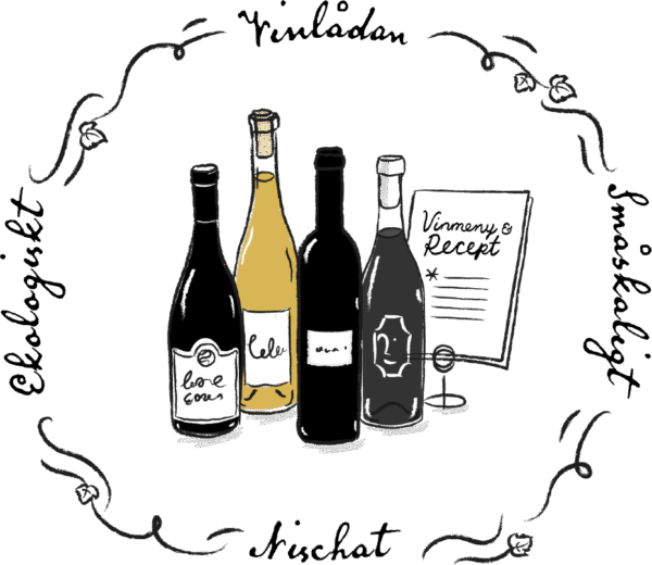 Var tredje månad sätter vi ihop en vinlåda med ekologiska viner från småskaliga vinodlingar. Vinlådan innehåller alltid fyra röda viner och två vita. Varje låda är unik och följer årstiderna.